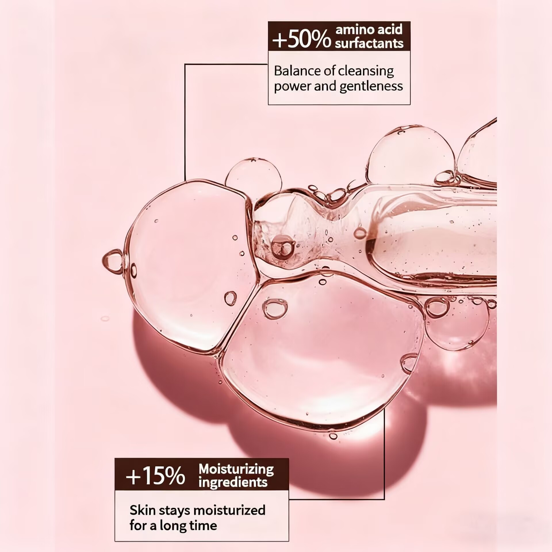 Gentle Yet Effective – +50% amino acid surfactants balance cleansing power with skin gentleness, suitable for sensitive skin.